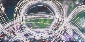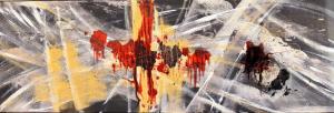 SOLITUDINE Tecnica: Acrilico 2011 30X100 il dolore , l'assenza ma anche la forza e l'energia di reagire a un sentimento che logora, tutto espresso con il colore.Come un piccolo pianeta ferito nel buio dell'universo in mezzo a una tormenta galattica. Disponibile: Si