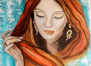 SVELARSI Tecnica: Acrilico 2016 45X60 continua la serie dei ritratti femminili, questa immagine mi ha conquistato per la sua dolcezza e il significato profondo del gesto di svelarsi, del rendere visibile e accessibile qualcosa di intimo e personale Disponibile: Si